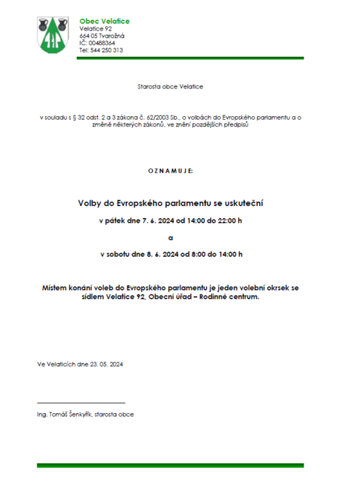 Volební místnost v naší obci bude zřízena na obecním úřadě v Rodinném centru.