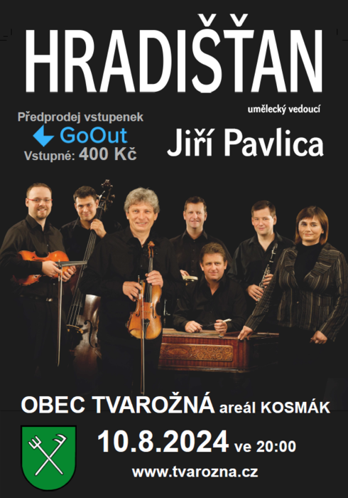 Obec Tvarožná vás srdečně zve na koncert cimbálové muziky HRADIŠŤAN. Uskuteční se 10. srpna ve 20,00 ve venkovním areálu Kosmák ve Tvarožné. Předprodej vstupenek: GoOut ZDE, cena 400,- Kč. Bližší informace ZDE a na plakátu.