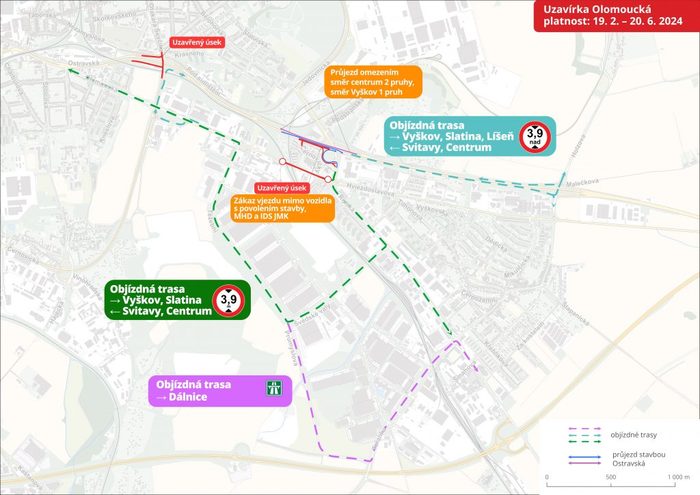 Od 19. února do 20. června 2024 bude uzavírka na části Olomoucké a Ostravské.
