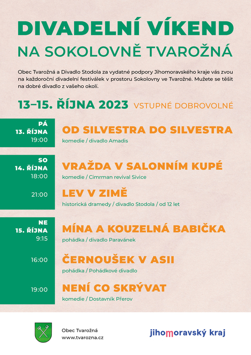 Obec Tvarožná a Divadlo Stodola za podpory Jihomoravského kraje vás zvou