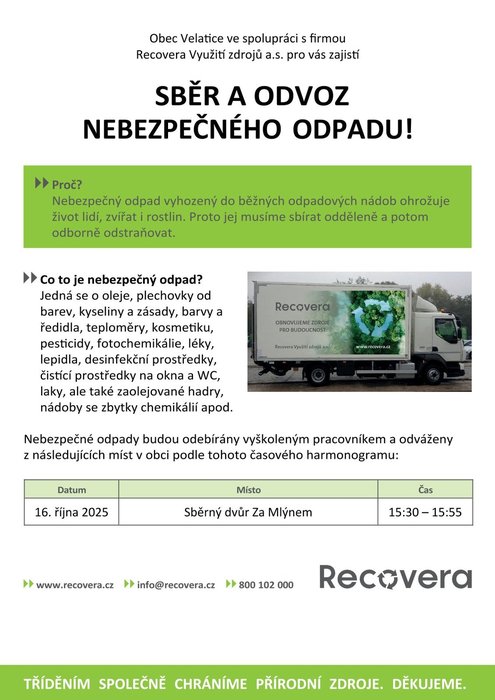 Úvod > Obec > Aktuality > Sběr a odvoz nebezpečného odpadu - 16.10.