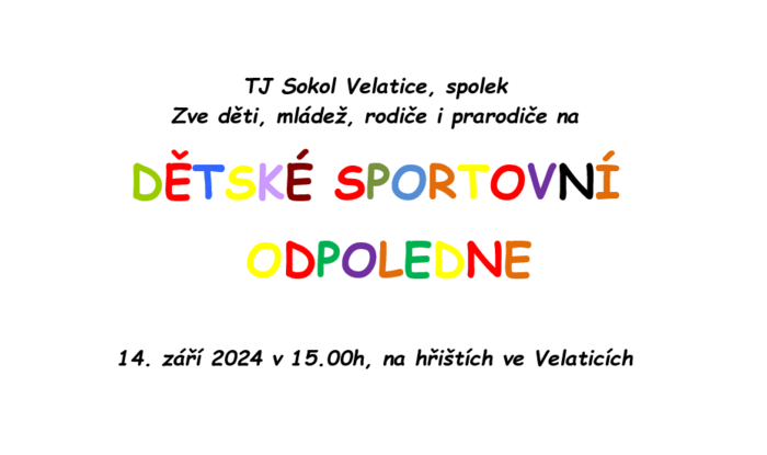 TJ Sokol Velatice pořádá v sobotu 14. září od 15,00 na hřišti za Sokolovnou