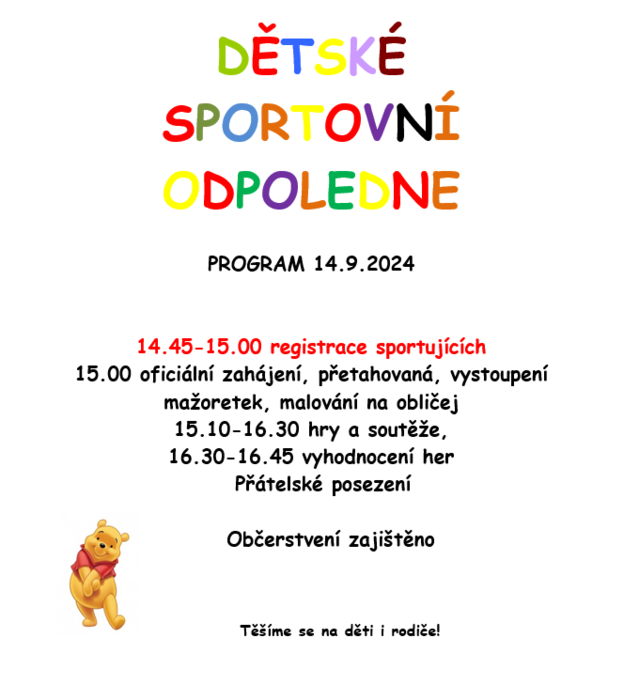 Termín uspořádání sportovního odpoledne byl z důvodu nepřízně počasí odložen.
