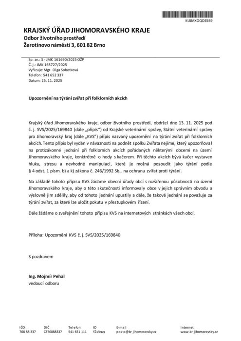Úvod > Obec > Aktuality > Upozornění na týrání zvířat při folklorních akcích