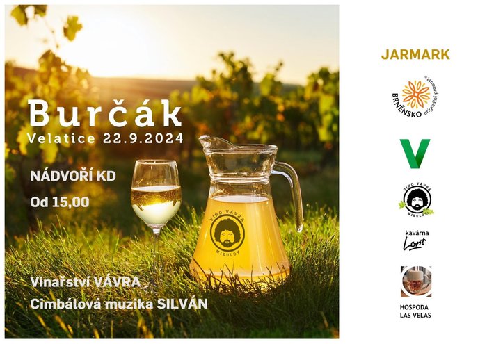 Velas burčák a jarmark, neděle 22. září, 15 - 19, nádvoří KD